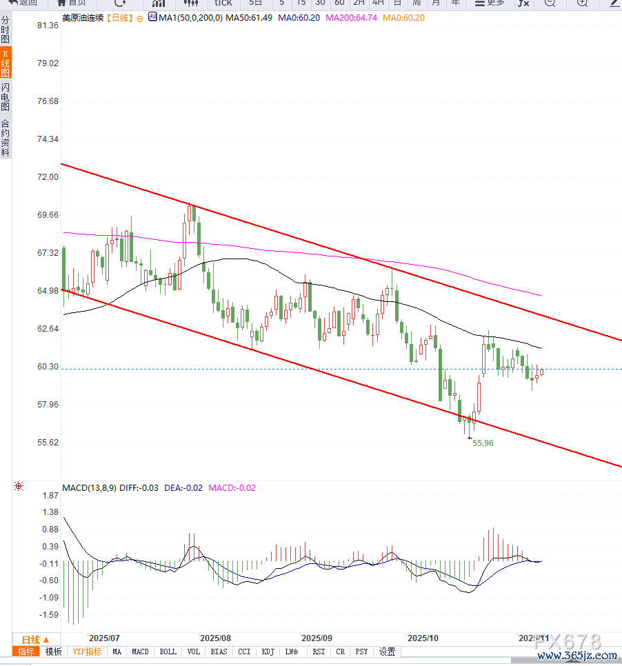 技艺层面知晓,好意思原油日线图形也曾处于着落趋势线之内,且均线守护空头运行,而MACD主张流畅调度之后存在反弹的需求,短期大幅下行的概率不大,日线级别均线压力61.30成为短期多空分水岭。